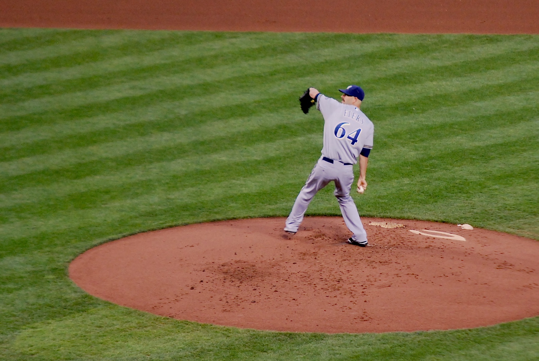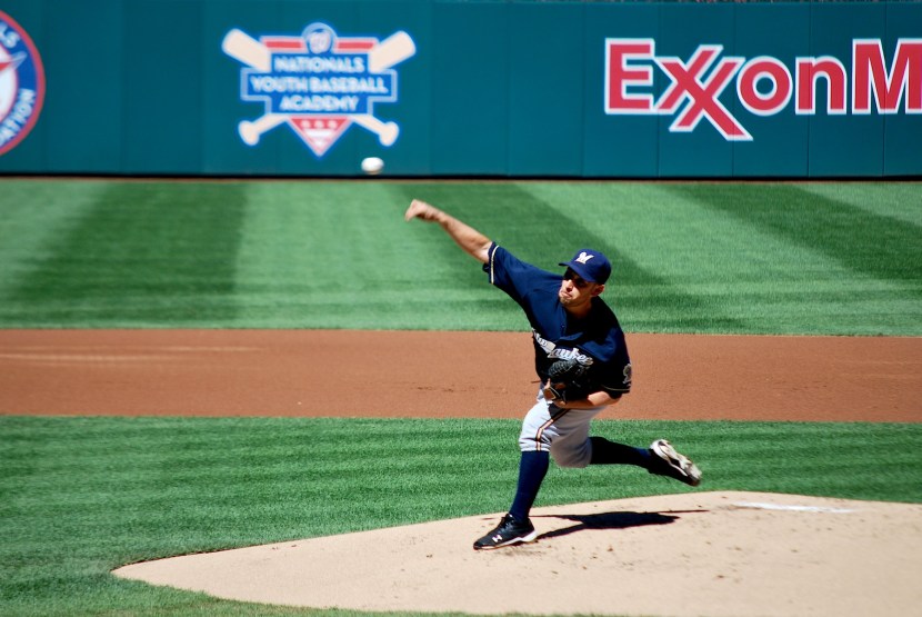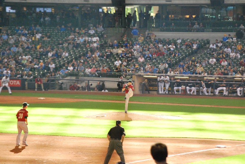 The game got started and I completely forgot about the first pitch picture until it was too late. The third pitch Yovani Gallardo threw will have to do: