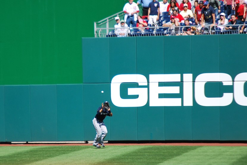 In the bottom of the 2nd Estrada retired the side in order. The last out was a fly out to centerfield from Kurt Suzuki. I think this picture of Gomez making the catch is a little funny because you can’t see his face. He was probably shielding the sun with his glove because it was right above the stadium behind home plate. Foreshadowing??? Perhaps…