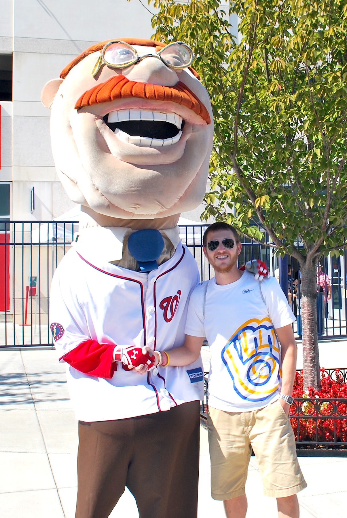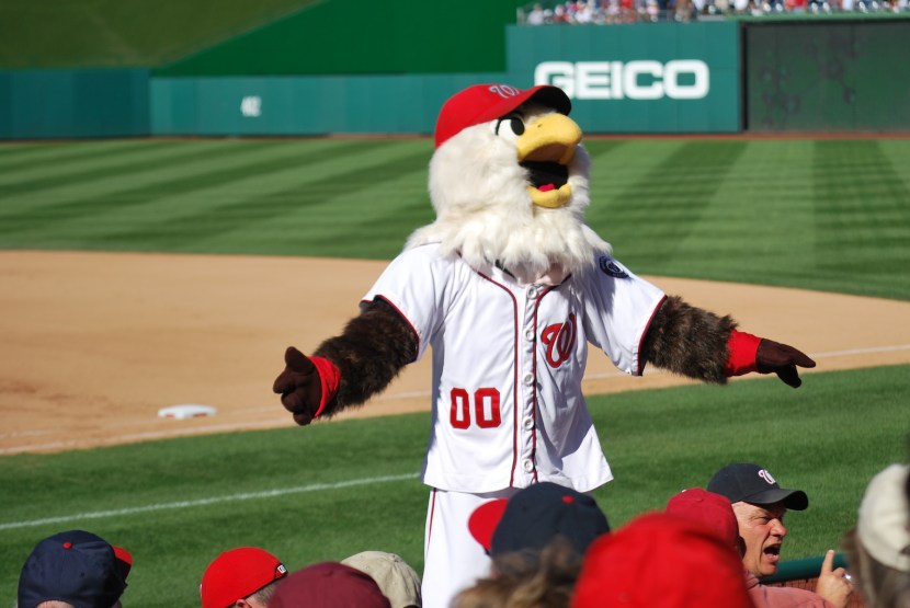 During the 7th inning stretch Screech (the Nationals mascot) was on top of the home dugout. On a side note, shouldn’t he have wings and not arms?