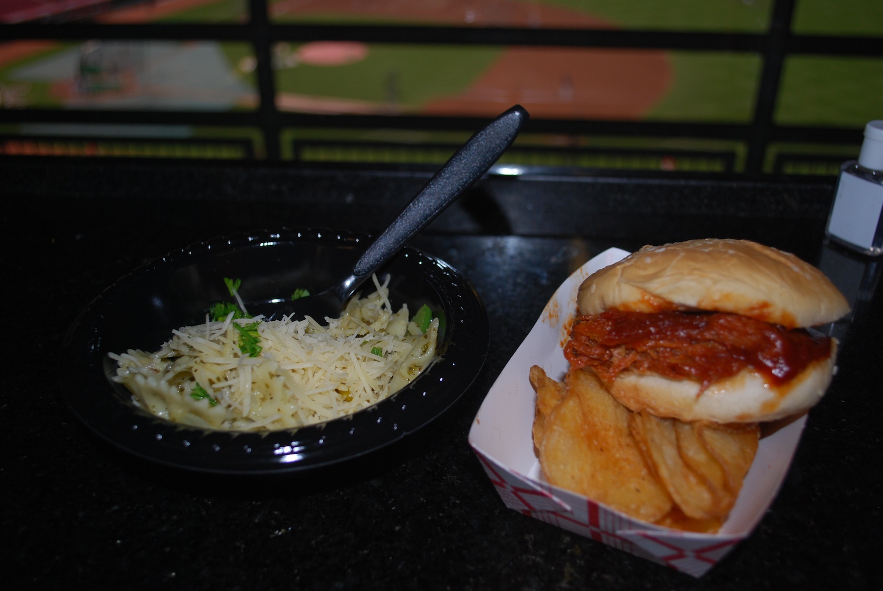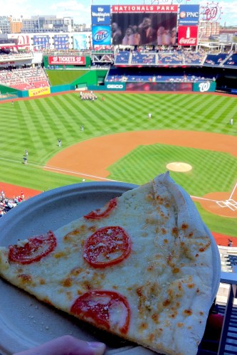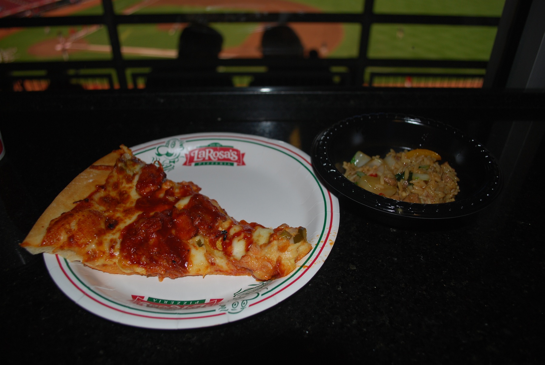They are both kind of small so you can click on the images to view a bigger picture. I walked towards the elevators near home plate in the upper deck and got a slice of tomato basil pizza at one of the concession stands. Not amazing, but still good. The concession stand workers refer to it as “Tom-B” in case you were wondering.