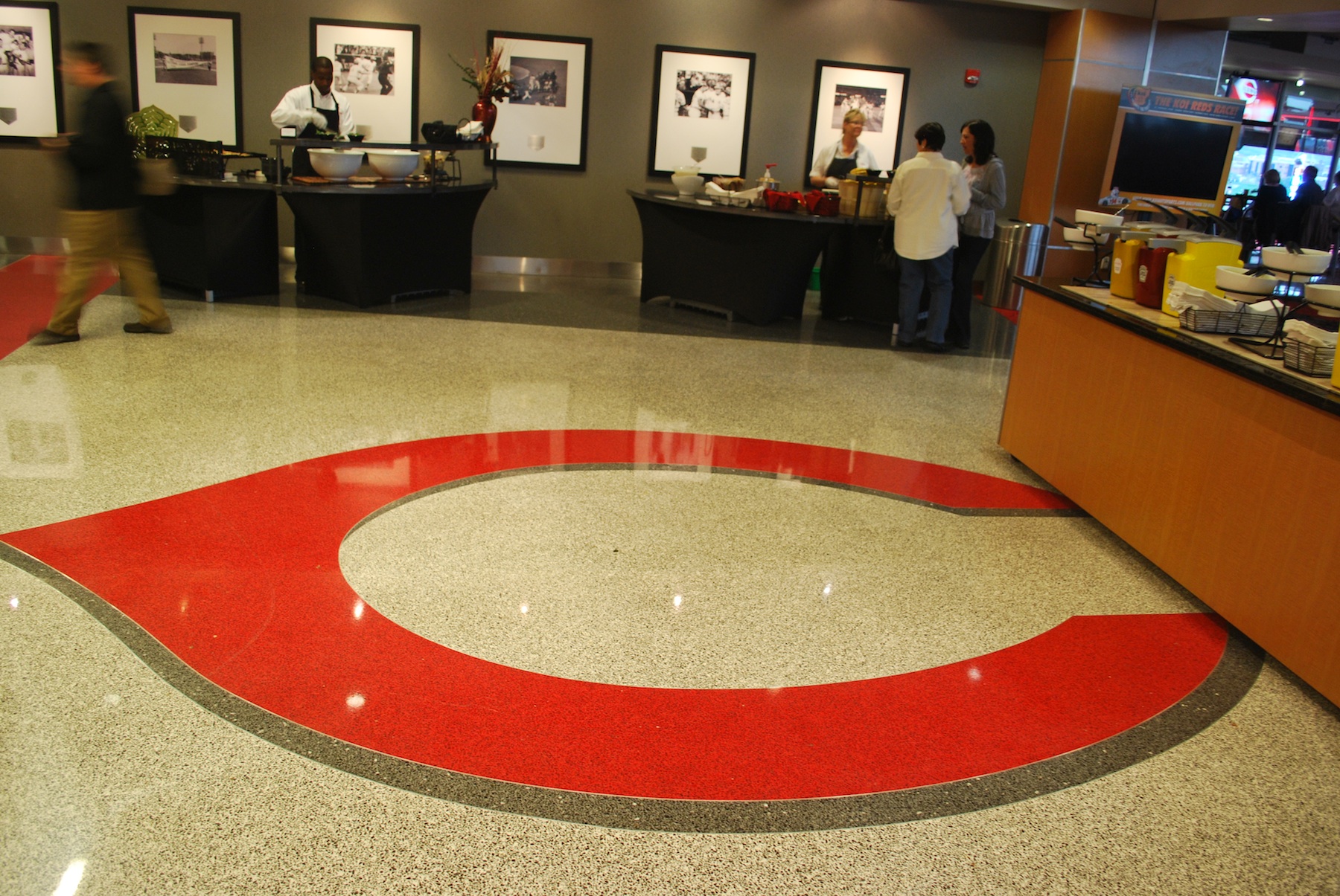 After taking the elevator to the club level and getting my wristband I came across a giant (Reds) C on the floor.