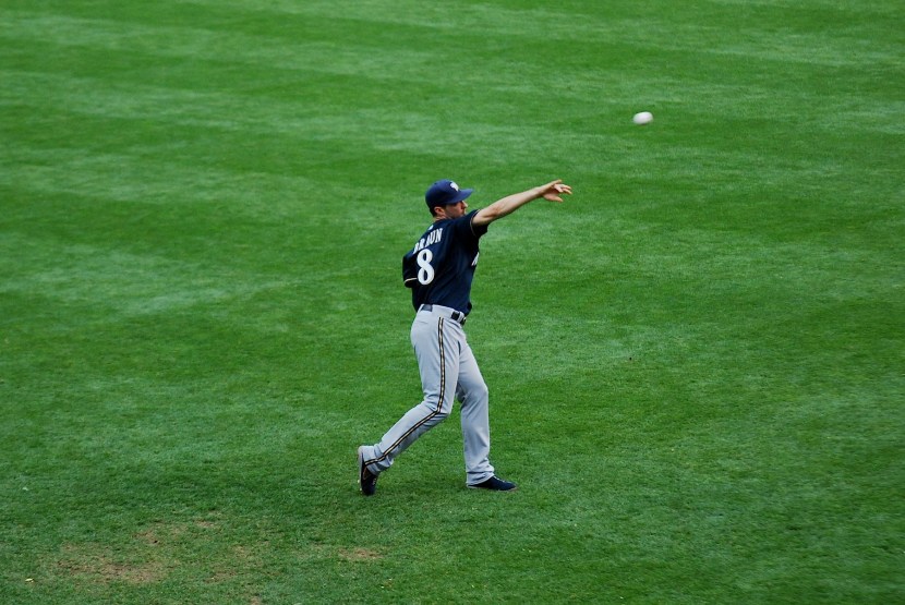 I made my way over to the left field seats by the time the Brewers took the field for the bottom of the 1st. Ryan Braun warmed up with the ball boy that sits along the left field line to scoop up foul balls.