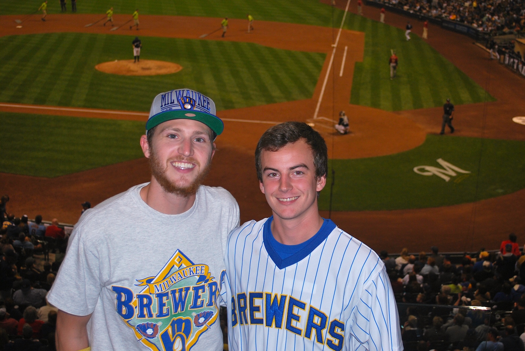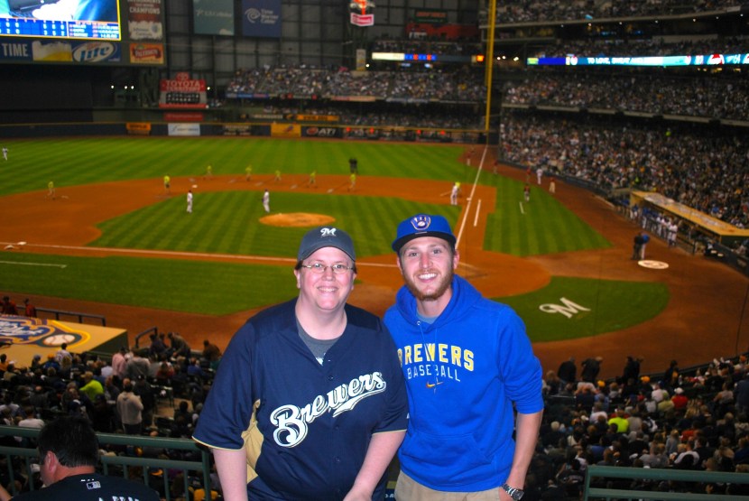 Jose Veras came in and threw four pitches to finally shut the door. Final score: Brewers 9 – Astros 5. At some point I had Kathy, who sits behind me on Saturdays, take a picture of me and Brandon.