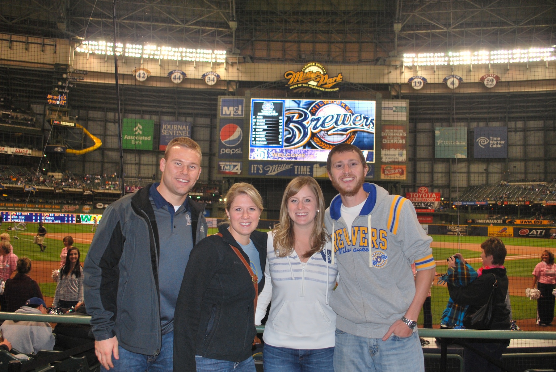 On Monday I went and got an oil change at the Honda Service Center and also got my license plate reattached to my now scuffed up bumper. I also stopped by Tetra Tech (my former employer) to say hi to some familiar faces and see the remodel job that was done since I last visited in July. I finished up the blog post and then Victoria and I left our apartment at 3:35. Someone that Victoria works with gave her four tickets to the game on Monday and we were joined by a friend of Victoria’s (Ciara) and her fiancé (Andy). Even though our respective apartments are only a few miles apart in Madison we drove separately because they said they might have to leave early.