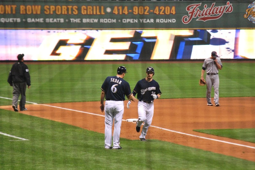 Weeks followed Aoki with a single and Braun doubled to put runners on 2nd and 3rd. Ramirez stepped in looking to give himself 100 RBI on the season. On the 0-1 pitch Ramirez lined one up the middle that shortstop Zack Cozart couldn’t coral, giving Ram-Ram his seventh 100 RBI season and first since 2008. I’ll be the first to admit that I was skeptical about the signing but he has performed better than even I was hoping for. I’m not afraid to say I was very, very wrong. Nice work, Aramis, my apologies.
