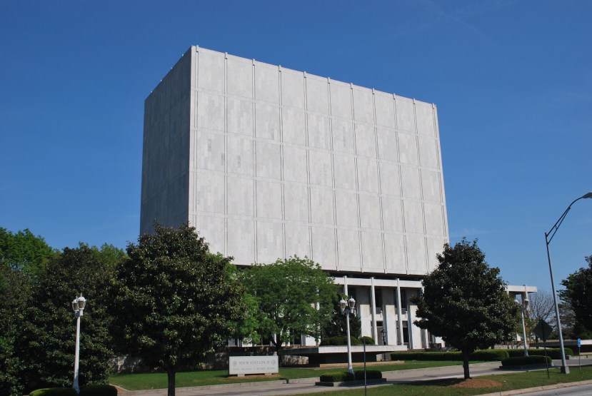 After lunch (which was also my breakfast), we headed back to their house to get ready for the game. I finished up the Friday post and we headed out with Dave, Annette, and Bill. Again we boarded the MARTA at the Chamblee station and took it downtown. We walked to Turner field again, even though there were shuttles waiting by the MARTA station this time. We were going to tailgate with some of Bill’s friends, and along the way there were a few photo opportunities. This first picture is of the State Archives and Records Building.