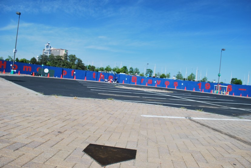 The Summer Olympics were held in Atlanta in 1996, and Turner Field actually served as Olympic Stadium, where it held the Opening Ceremony, the track and field events, and the Closing Ceremony. The stadium was obviously configured differently for the Olympics and had about 35,000 more seats. After the Olympics they reconstructed what was basically the outfield section and created a new one, while the seating bowl from foul pole to foul pole remained mostly the same. We had some time to kill and went to see the spot where Hank Aaron’s 715th home run landed.