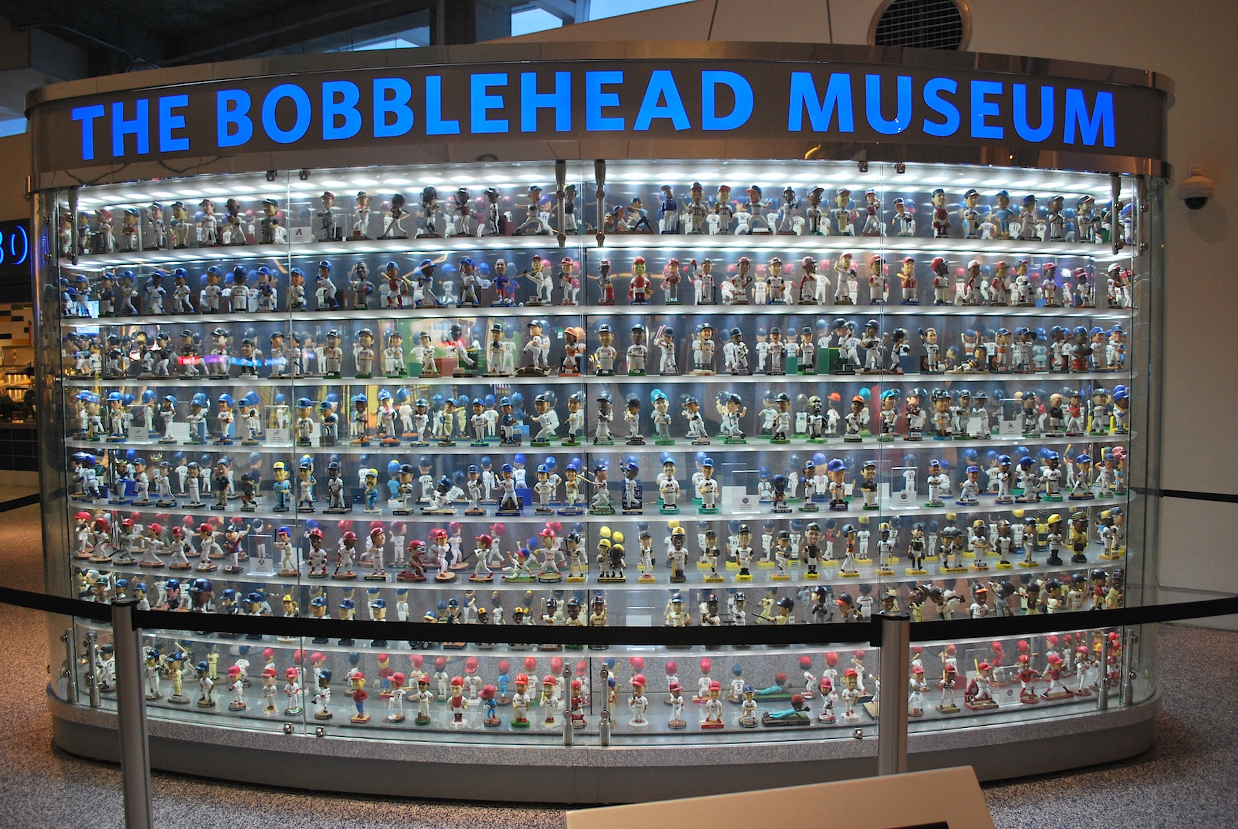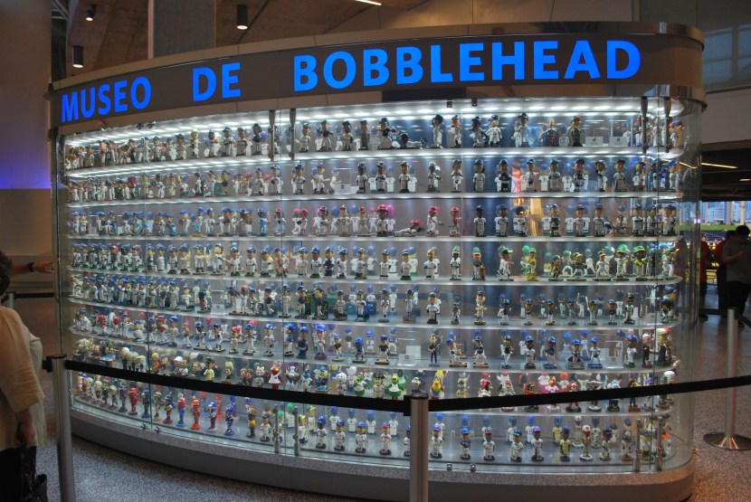 I got my ticket from will call at 6:10 and went inside. They have a “Bobblehead Museum” on the main concourse of the stadium. I put it in quotations because it’s really just a giant collection, and I mean GIANT. They have so many that they can’t hold them all in the two-sided display structure and they periodically switch them out. If you look closely at the first picture you can see a couple of the racing sausage bobbles on the second row in the bottom left (the pole covers them up a bit). The bobbleheads are all on shelves that shift every so often so that the bobbles actually bobble. Well done, Marlins, well done.