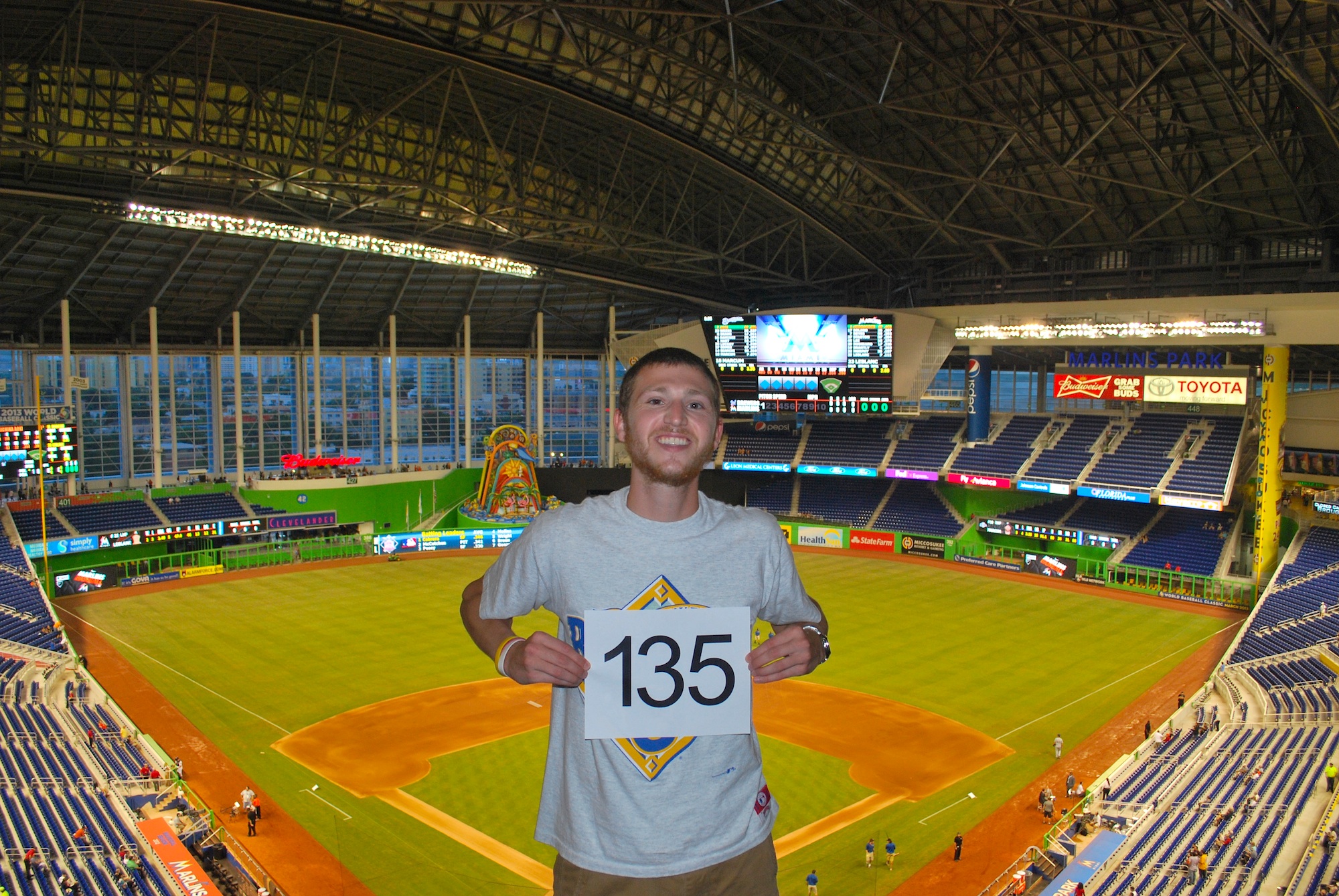 I went to the upper deck to get game photo number 135 taken. I asked a nearby Marlins fan, who I found out is Zach, to take it for me. Thanks Zach!