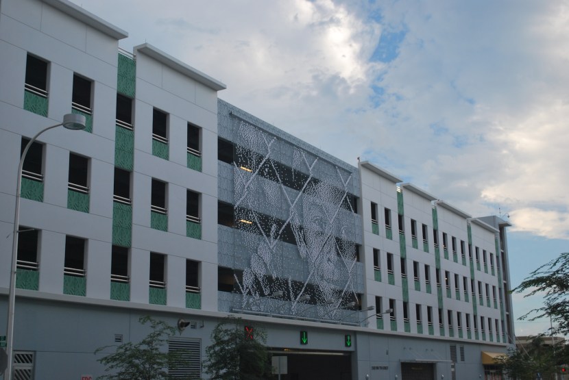 I got on the bus at 3:15 and rode it back to downtown Miami. I got ready for the game and took a 5:20 bus to Marlins Park. While I was waiting for my ticket at will call I noticed that they have this on one of the parking garages, not sure if it is someone in particular or not.