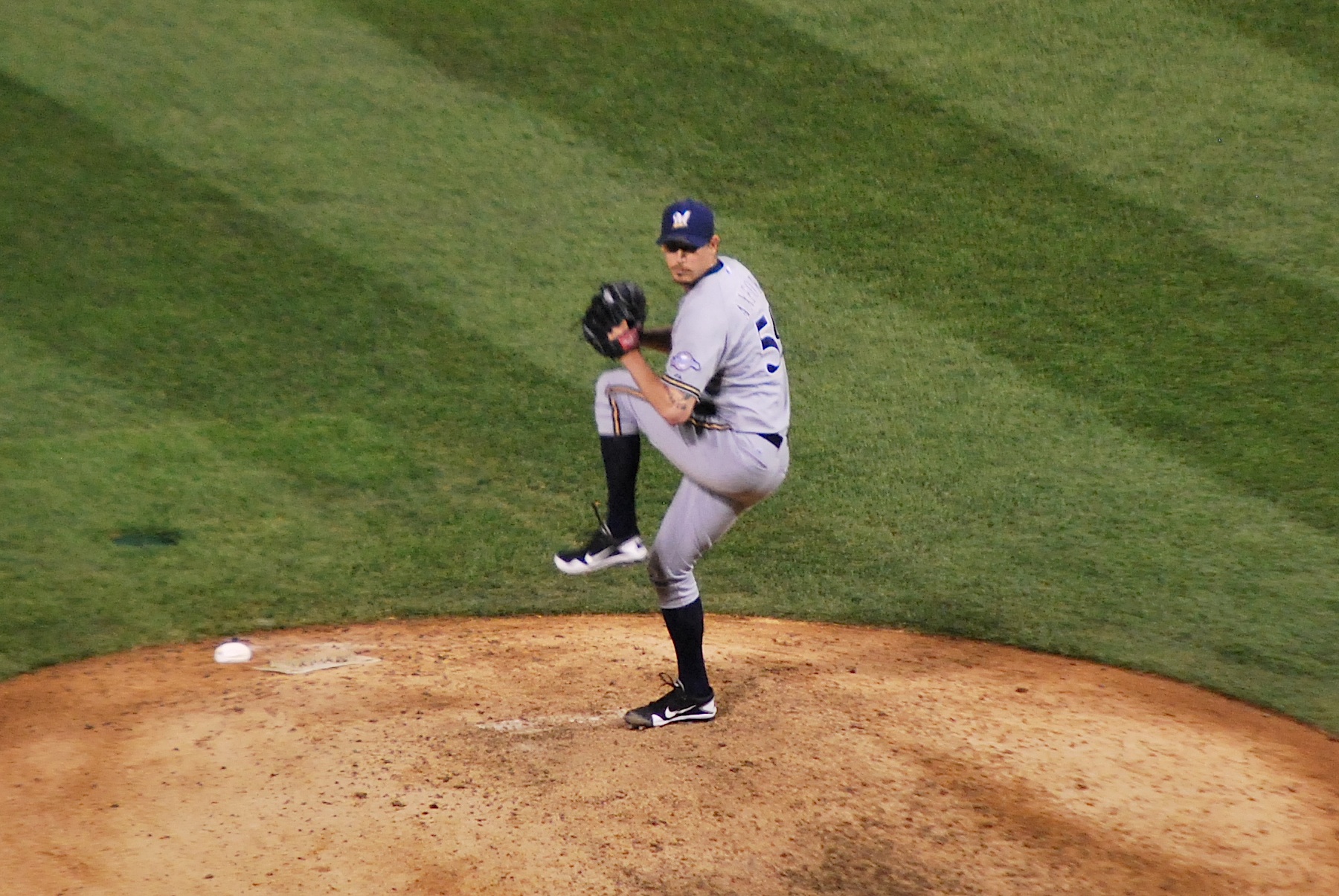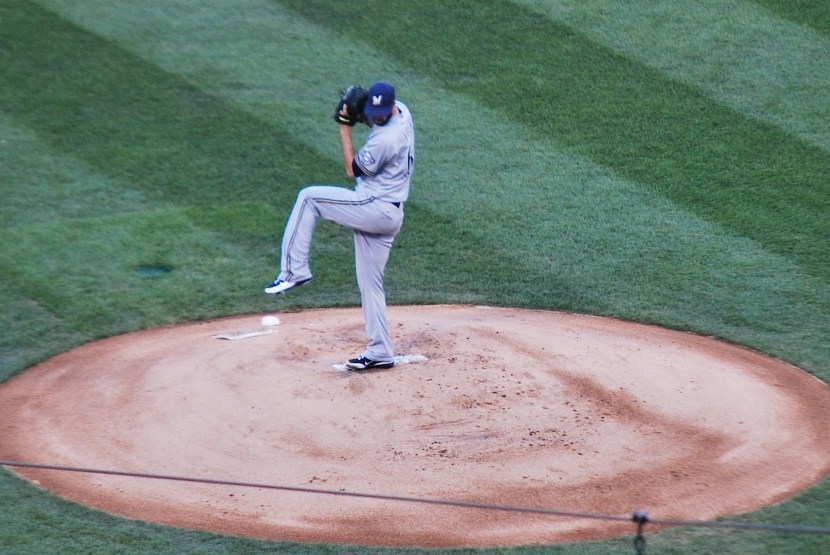 Fiers got the start for the Brewers and he pitched a good game (albeit only 5 innings). Here he is about to unleash the first pitch of his outing.