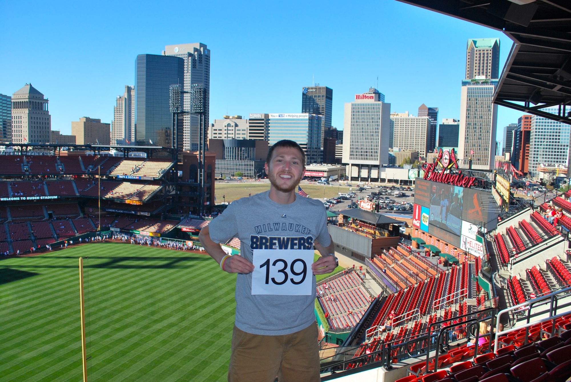 When I got to the upper deck I found a good spot to get game photo number 139 taken. I had asked two guys if one of them would be willing to take a picture for me. The one asked the other if they should help out a Brewers fan. Once I told him that I was going to all the games and raising awareness for Be The Match he gladly helped out (and he probably would have anyways). Afterwards I told him and his friend more about Be The Match and joining the registry.