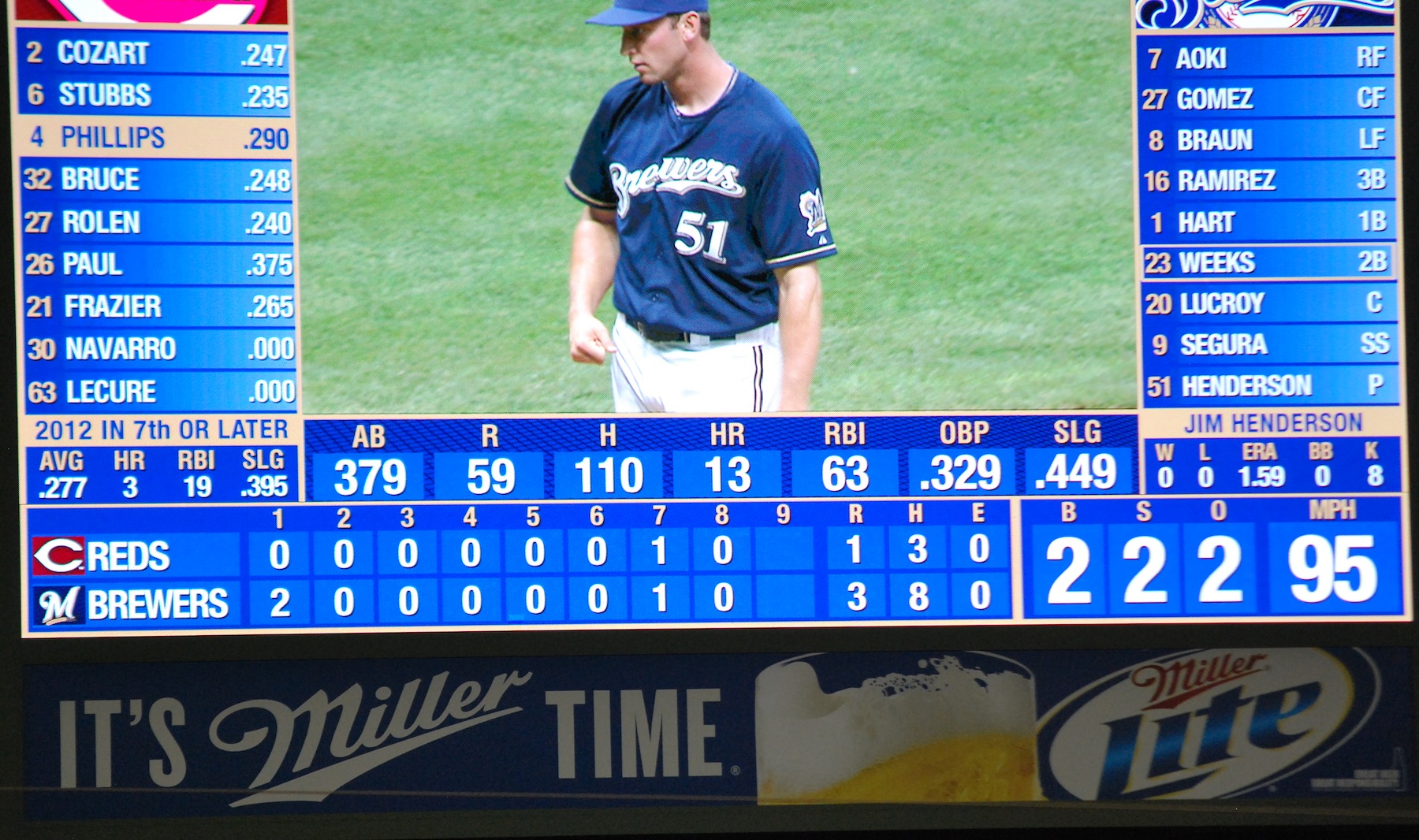 Something that I noticed right away when I looked at the scoreboard was the Brewers record: