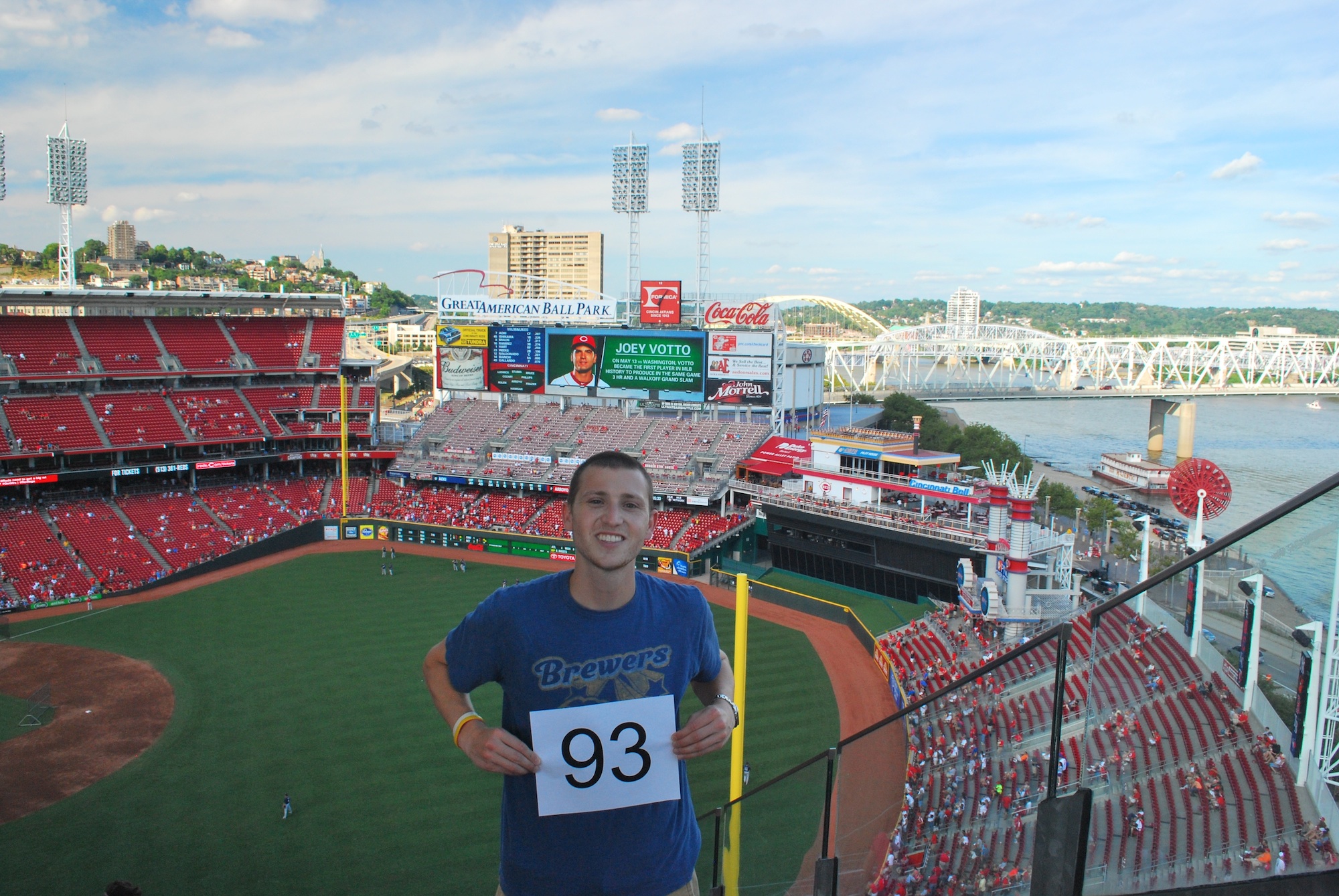 I went over to “Gapper’s Alley” behind section 119 to watch the bottom of the eighth. During a pitching change I walked over to section 129 so I was near to the exit that was closest to my car. In the top of the ninth Carlos Gomez drew a walk with two outs. Aroldis Chapman was pitching for the Reds and he can throw some heat. Supposedly he hit 106 MPH on a radar gun last year during a game but it’s unknown if the gun was “hot”. He still hits 101 on occasion but he might be holding back a little bit to be more accurate. Ryan Braun was at the plate and Gomez was able to steal second despite the fact that Chapman threw over to first on the play. Braun went down 0-2 in the count and after fouling off the first 0-2 pitch he struck out swinging.