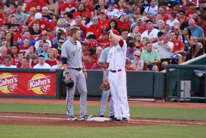 In the bottom of the seventh the Reds tacked on two insurance runs when Brandon Phillips took Jose Veras deep. The Brewers went in order in the 8th and 9th, and that was all she wrote. Final Score: Reds 6 – Brewers 2.