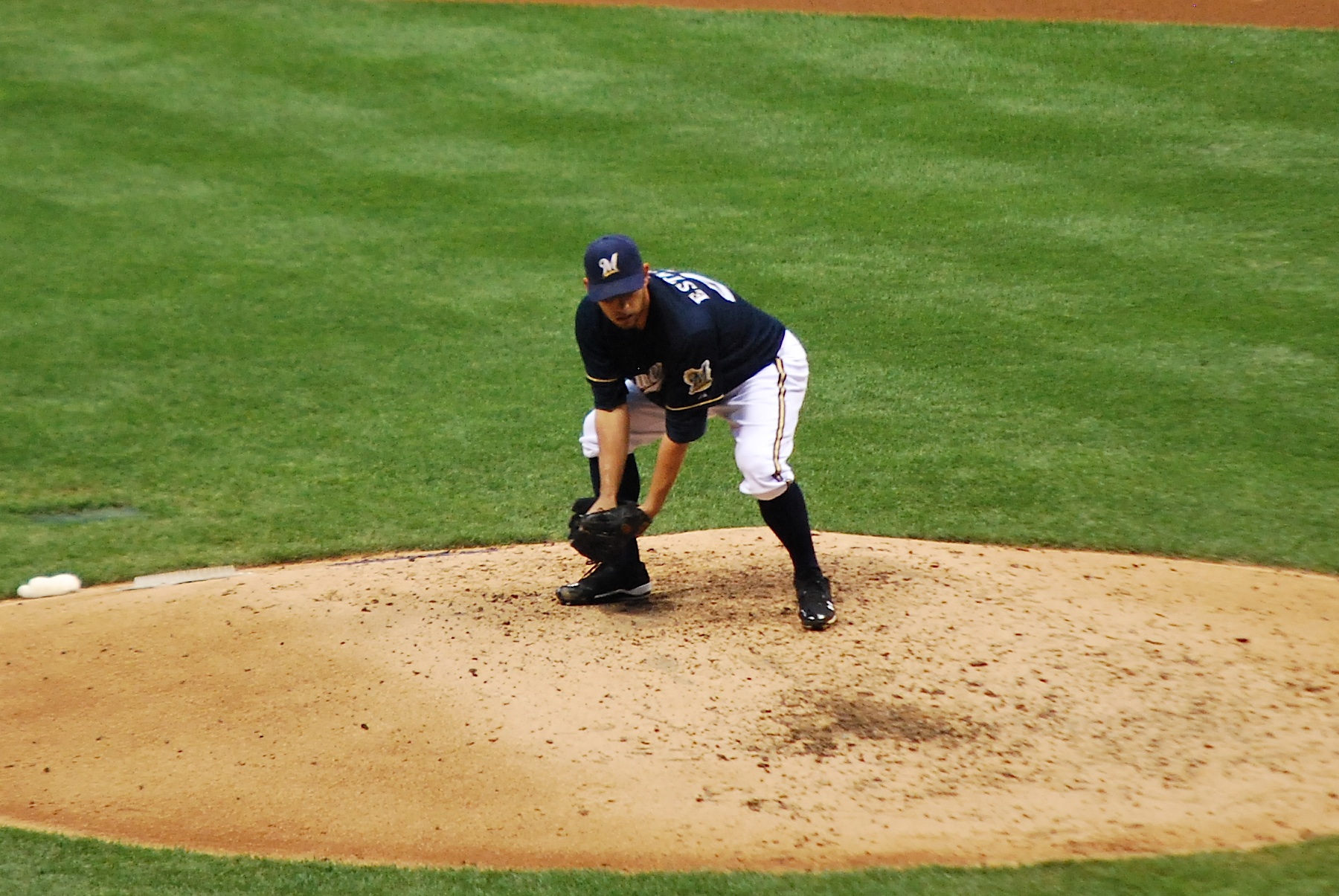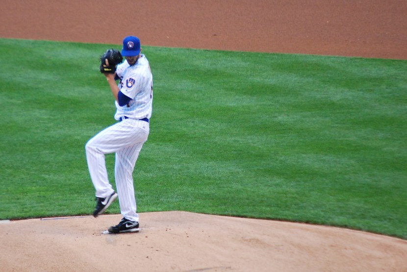 Mike Fiers got the start for the Brewers and he didn’t disappoint. Here he is about to deliver the first pitch of the game: