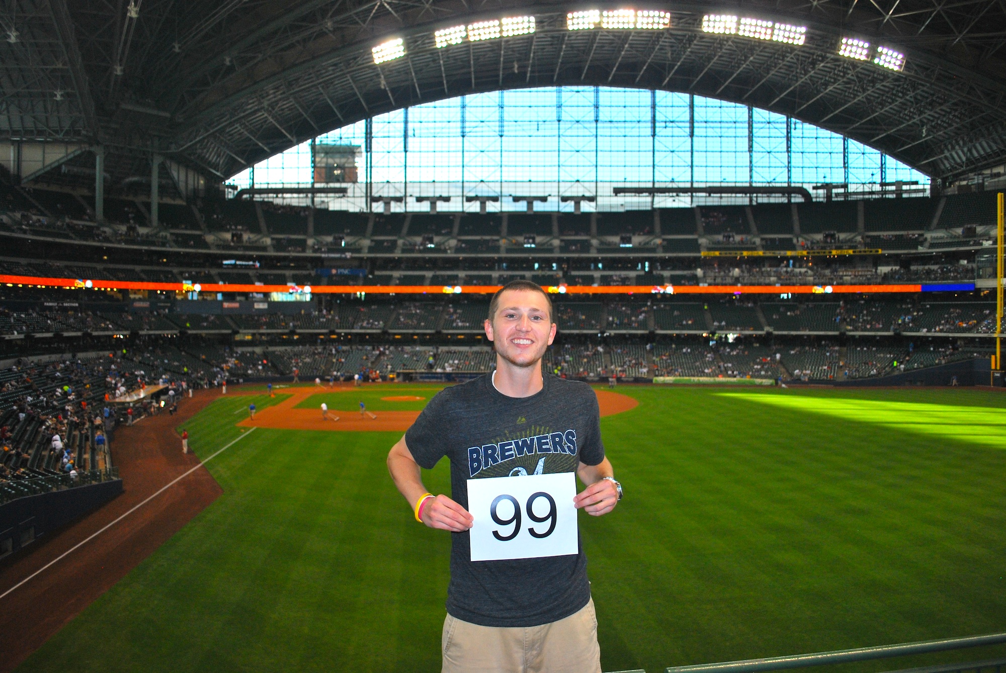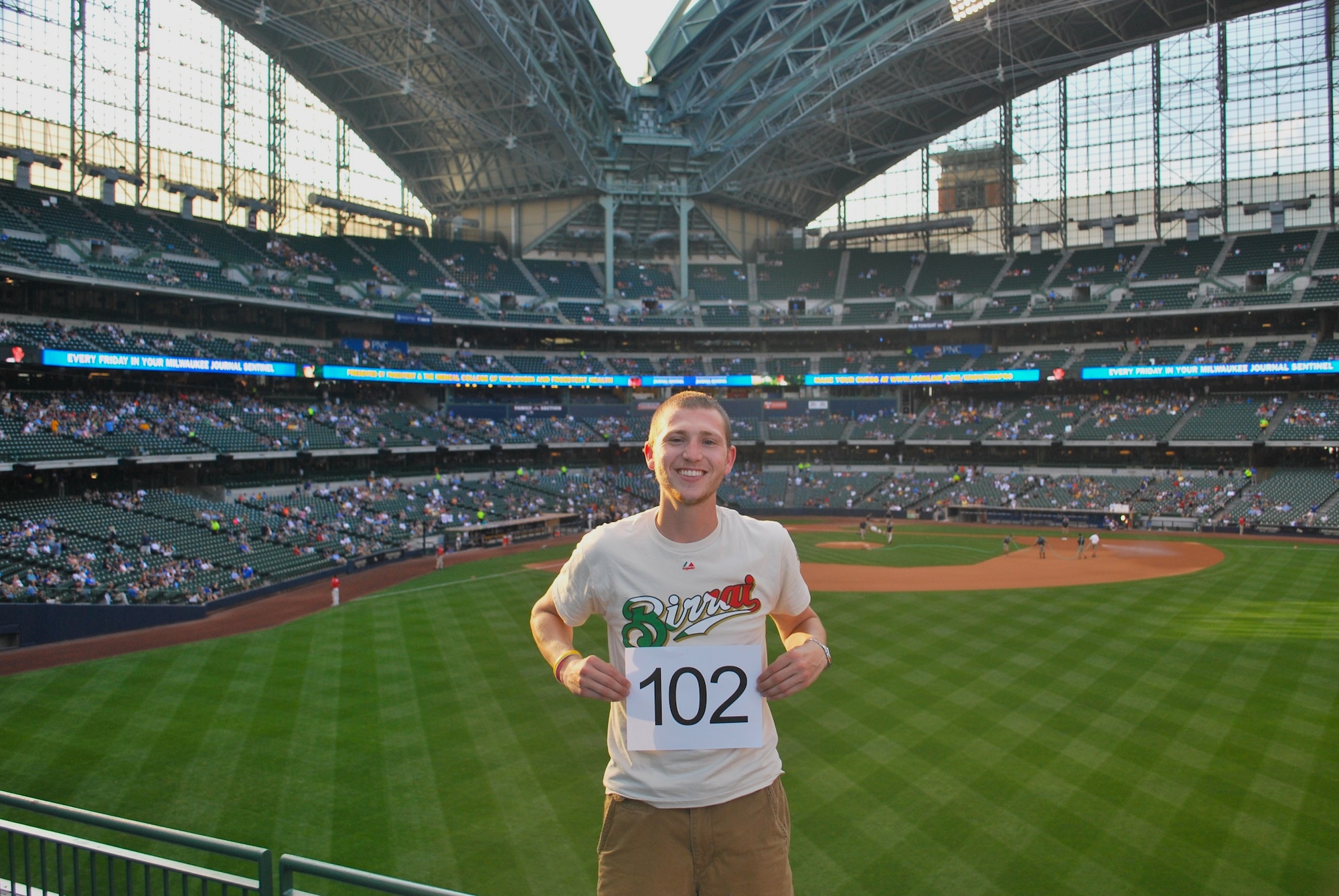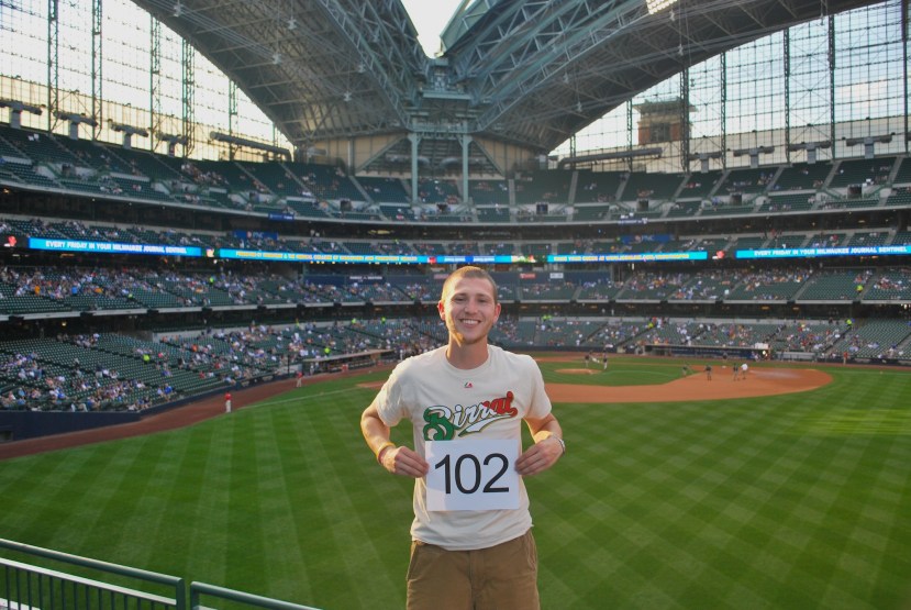Derrick was waiting in his seat when I arrived 20 minutes before first pitch. I found out that he’s from Milton and currently living at his parents’ place while he attends UW-Whitewater. We probably should’ve car pooled since we left at around the same time and he came within 1.5 miles of my parents’ house on his way to the game. Sorry environment.