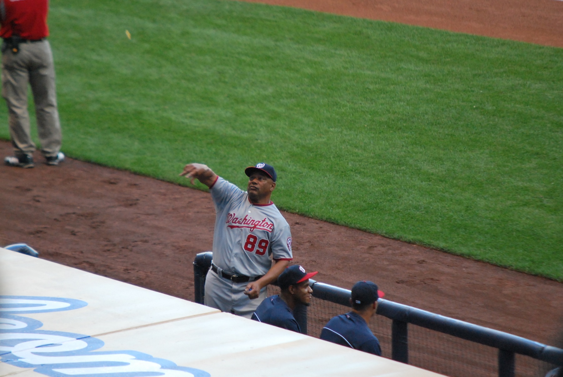 One of the Nationals’ coaches was throwing gum into the stands before the game started. I couldn’t find number 89 on their website under coaches, so i have have no idea who he is. It was nice of him to share some of the Dubble Bubble with a few fans.
