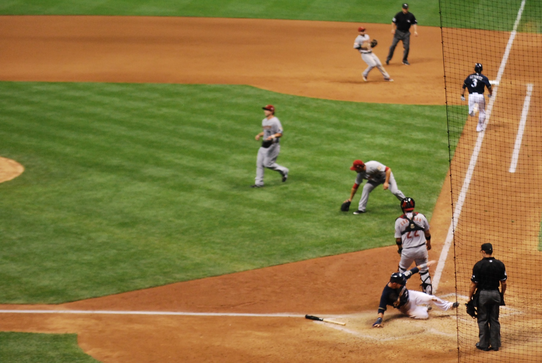 In the third inning the Brewers took a one run lead when Braun singled home Gomez. Gomez slid home and did a pop up slide that turned into a leap. Unfortunately the catcher is in the way, otherwise you’d have a better idea of what I’m talking about.