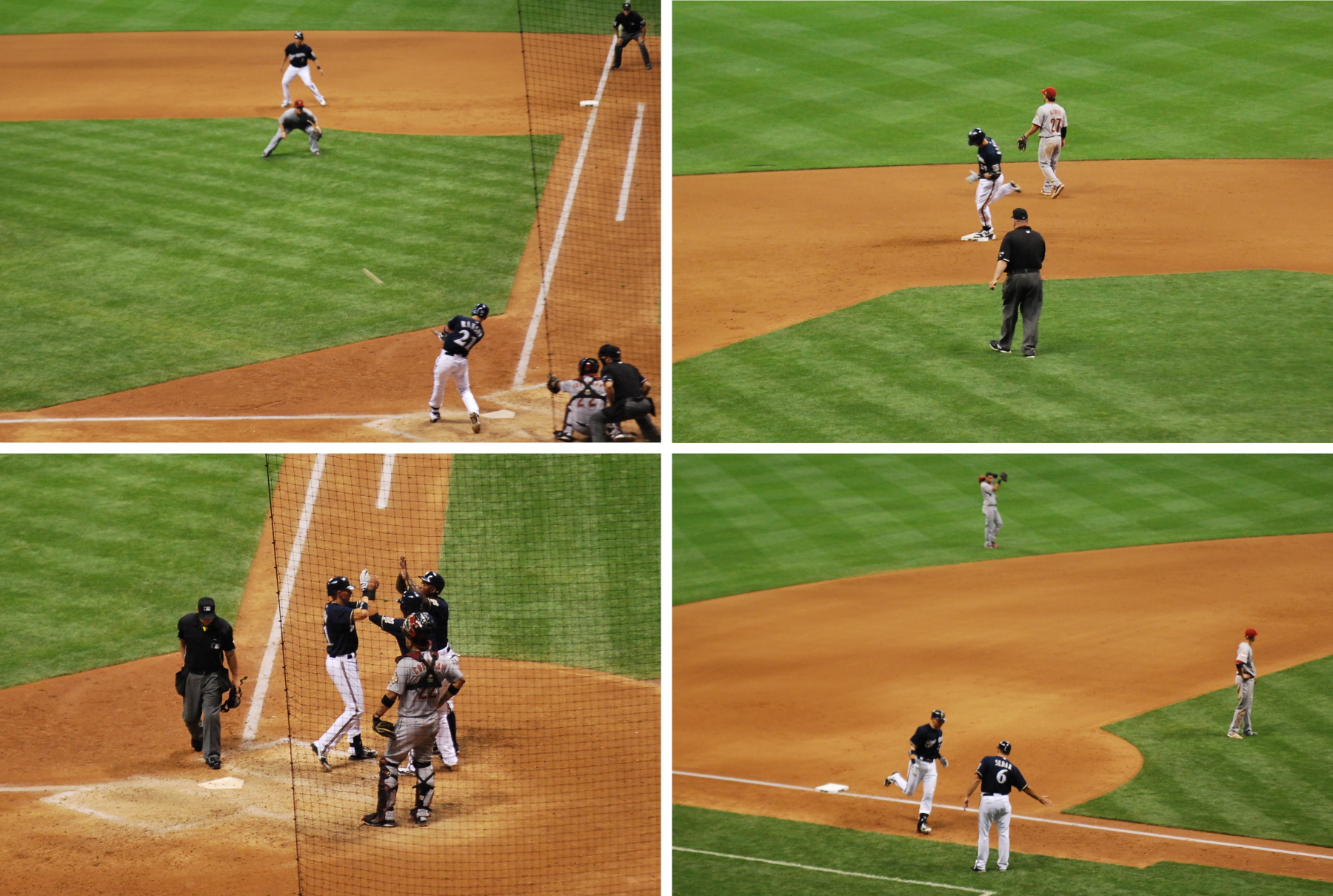 The Brewers took a 5-4 lead but they weren’t done yet. The next batter was Cody Ransom and he launched the second pitch he saw into the Brewers bullpen for a 3-run home run. I don’t think the progression needs explaining, but it goes clockwise from top left: