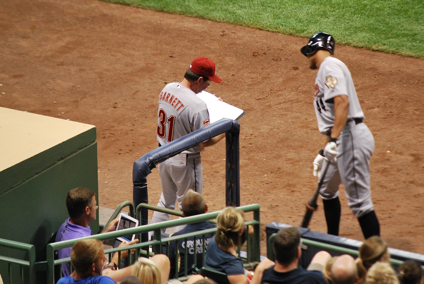 In the sixth inning Ishikawa doubled again and Braun followed with a single, putting runners on the corners with nobody out. I told Barry that I was hoping Braun would steal second to stay out of the double play. On the first pitch Ramirez did just what I was fearing. Ishikawa scored from third but the chances of a big inning were drastically reduced now that the bases were empty with two outs.