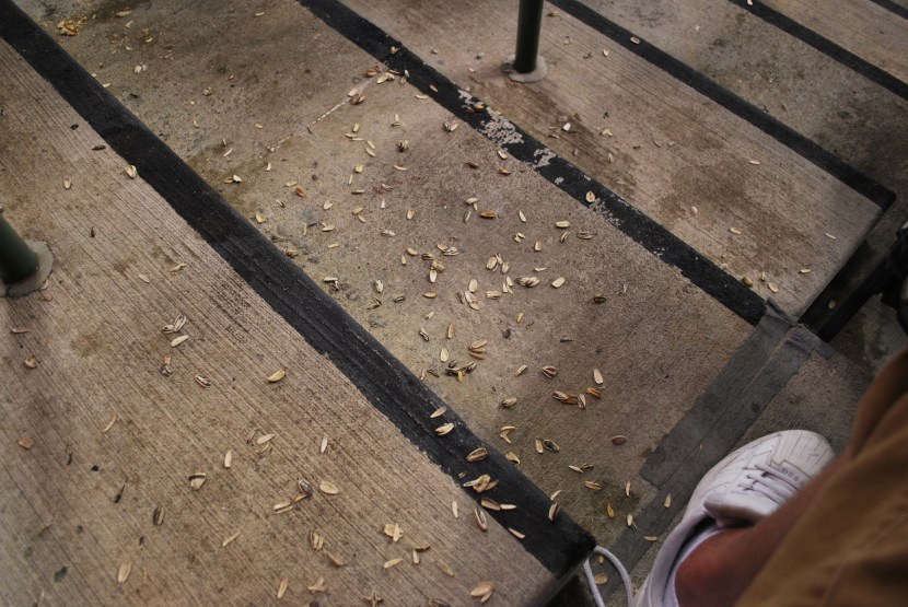 Jens had brought sunflower seeds to the game and was very generous in sharing them. This is what the aisle looked like towards the end of the game. I think next time I’ll spit them into a cup to save the cleaning team some extra work. I know it’s their job but I still feel guilty because it feels like littering.