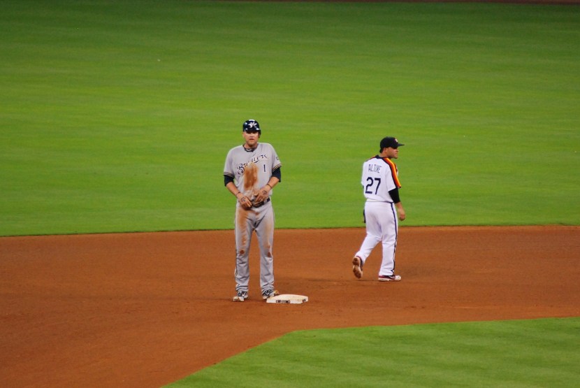 In the fourth inning Chart had doubled, and I got a picture of him when José Altuve was nearby. Altuve is the Astros’ second baseman, and he’s having a great season. I took the picture because Corey Hart is about six foot six, and Altuve is listed as five foot five. Not too exciting, but I thought it was cool/interesting.
