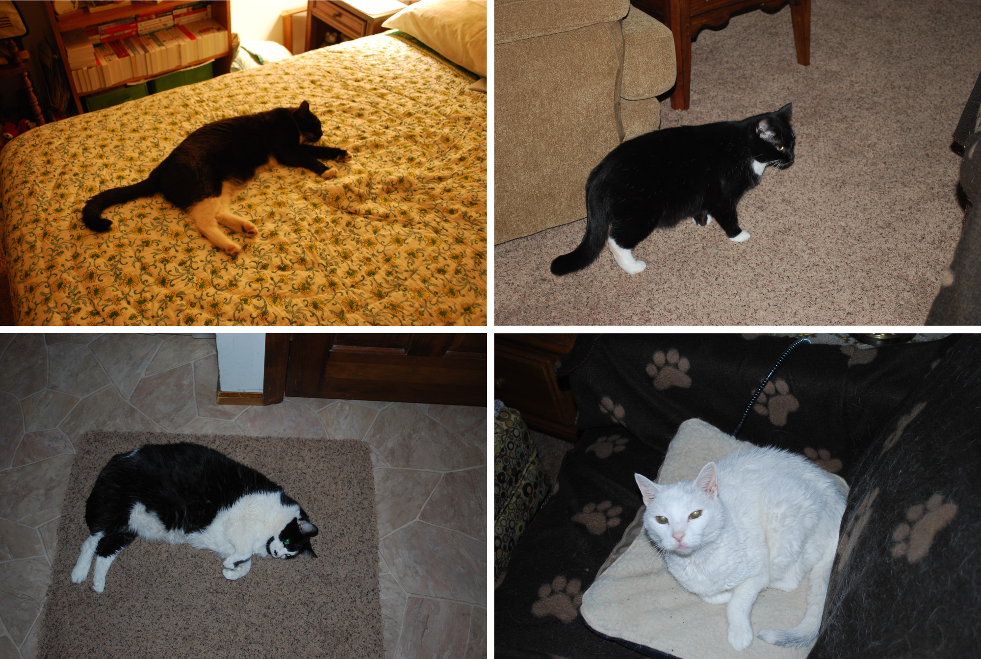 They have cat trinkets around the house, and this four part picture exemplifies my aunt quite well.