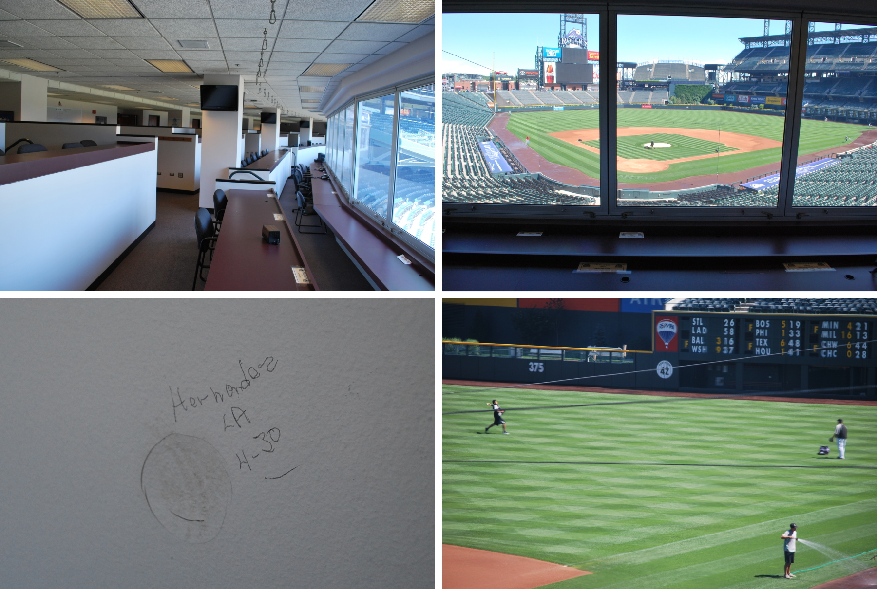 The press box was the next stop on the tour, and it is quite large. I haven’t been in the press box at Miller Park, but the Rockies press box seems larger.
