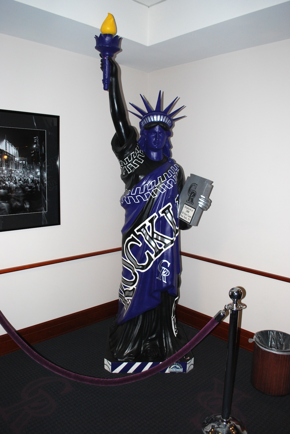 We started Thursday off by going to Coors Field, which is just a mile or so from Dustin’s house. The Rockies also had the day off, so the tour that they offer is more inclusive, and you get to see the visiting clubhouse. We got there about ten minutes late, but luckily all that they had done was go to the upper deck, something that I’ll be doing anyways in August when the Brewers visit. We went to the club level and continued the tour, the first thing we came across is this Statue of Liberty. The Yankees gave each National League team one of these to commemorate the 2008 MLB All-Star game. I’m not sure where the Brewers have theirs, but I don’t think I’ve seen it, or maybe I’ve seen it so many times I just pass by it and don’t pay attention to it.