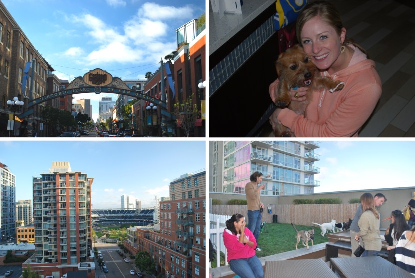 We got on the bus at 4:50 and headed back downtown. We stopped at Jamba Juice (thanks Pam!), and made our way back to the hotel. The four parter below contains pictures of our last few hours in San Diego (besides the airport). Going clockwise from top left, you have: