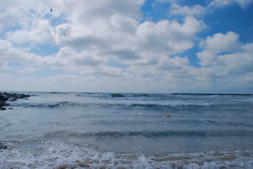 It was a (somewhat) nice day, according to Victoria anyways. It was a little windy on the beach, so at times it was a little chilly. We walked down to the water to get our feet wet, and going all the way in never crossed our minds after feeling how cold it was.