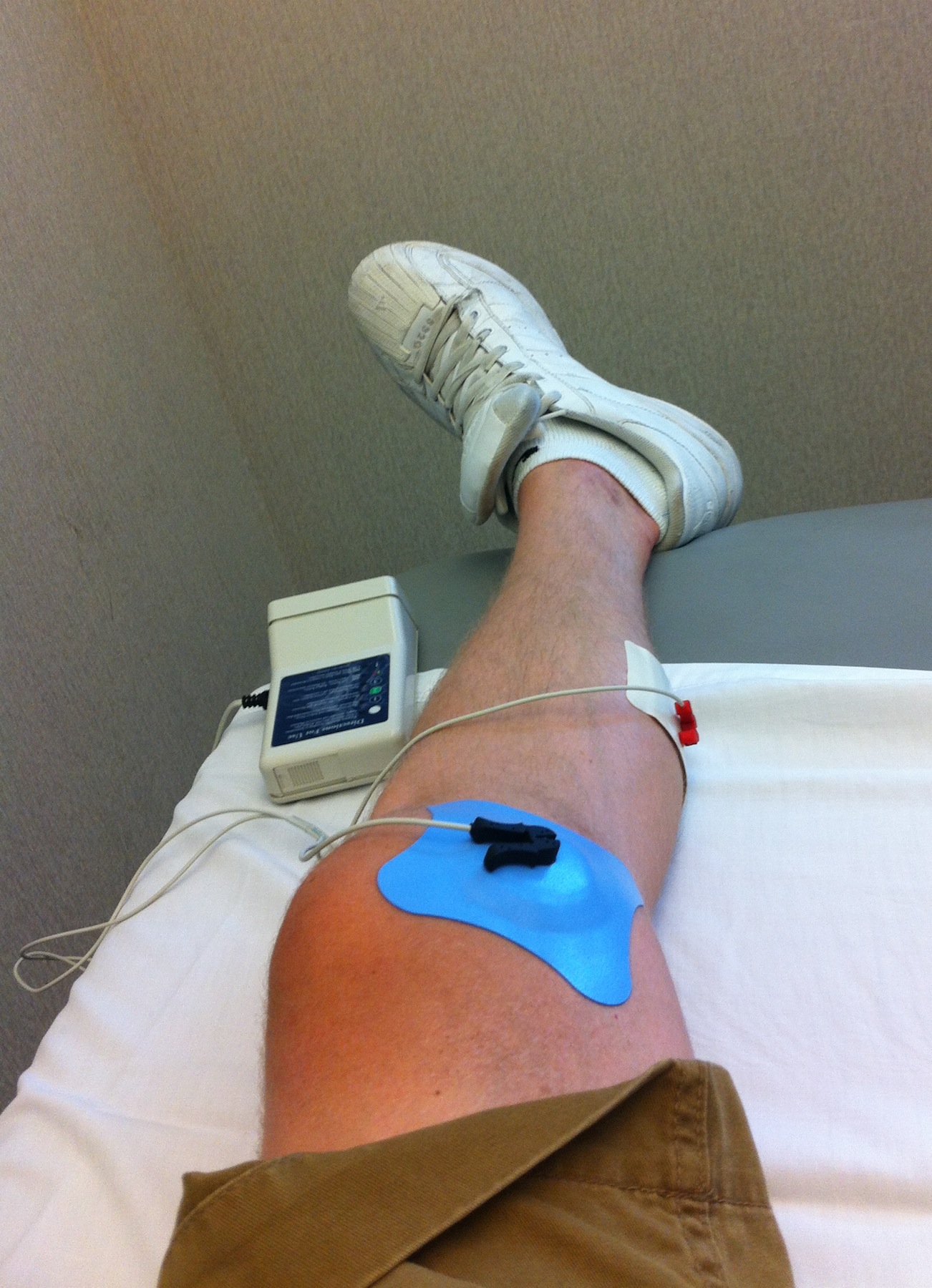 On Tuesday I had a physical therapy appointment, and they did an Iontophoresis treatment. It involves using an electric charge to deliver medication, in this case a steroid to try and help with the pain in my knee. It’s nothing crazy, and it just feels like some pins are poking you when they have it running.