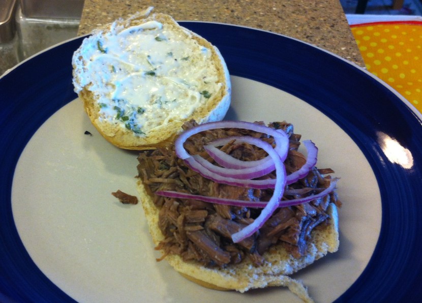 On Monday night Victoria made roasted and shredded beef sandwiches with horseradish mayo. She’s made them before and they’re amazing every time. I’m one lucky fella.